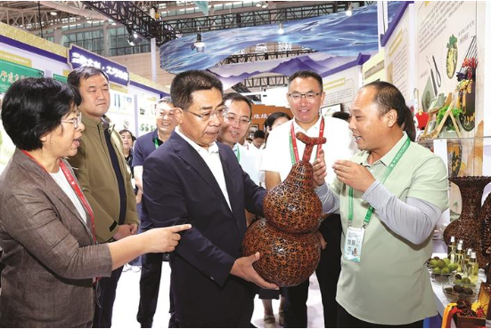 图为吕梁市委书记孙大军在省第七届文博会吕梁馆巡馆。 记者 薛志雄 摄