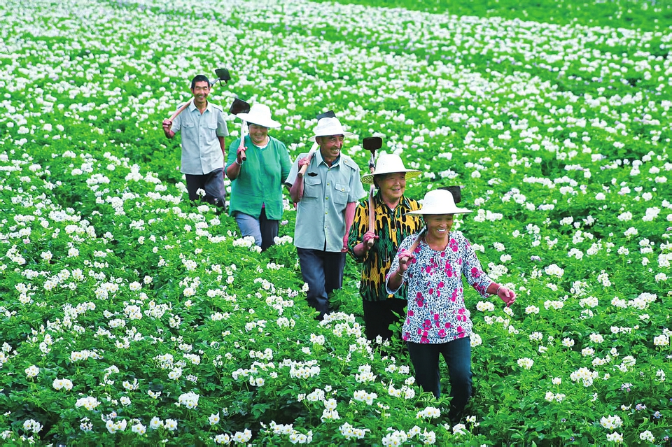 村党支书刘兴文站在观景台,手指着连绵的花海说:“我们村有三件宝——土豆花、寨南沟、饮马池。”据他介绍,每年土豆花景区年接待游客超10万人次。现在三个景区共发展起十多户农家乐,5处民宿,130多位村民就业,旅游旺季日均收入2万元。