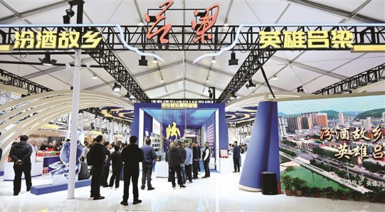 图为第三届山西特色专业镇投资贸易博览会汾酒推介现场。郝健 摄