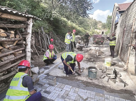 交城县以工代赈项目启动后,越来越多的村民实现“家门口就业”。罗丽 摄