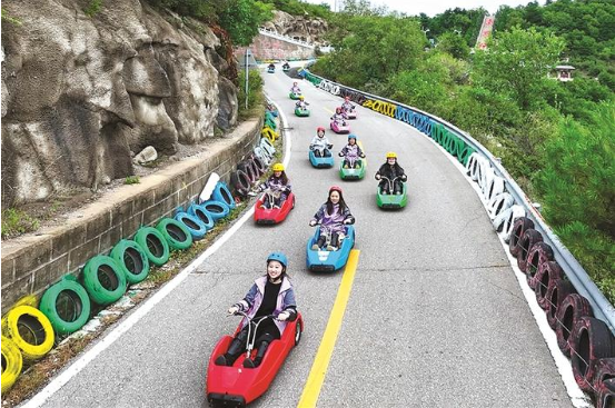 游客在北武当山体验滑板车乐趣。 太原日报 耿婧媛 摄