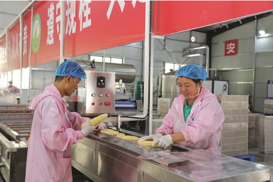 连日来,金家庄村的农产品加工车间里呈现出一派繁忙景象。刚刚采收的新鲜玉米,在工人们手中熟练地褪去外衣,随即被整齐码放,送上自动化流水线。经过精准的去头切尾,只留中段茎体,再通过清洗、漂烫、冷却、包装等多道工序,玉米的鲜甜被迅速锁定。