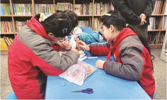 在充满创意的教室里,孩子们正围在老师身边,专注地调试着手中的机器人零件,眼神里满是探索的渴望;不远处的另一间课堂上,老师正用自制万花筒为孩子们讲解光学成像原理,小小的镜筒里折射出斑斓的图案,引得孩子们阵阵惊叹;图书馆的长桌旁,几名学生正埋头制作手工作品,彩色的线材在指尖穿梭,变成一个个充满巧思的小发明。这些鲜活的场景,正是黄白塔小学“守护好奇、鼓励探索、赋能成长”办学理念的生动注脚。